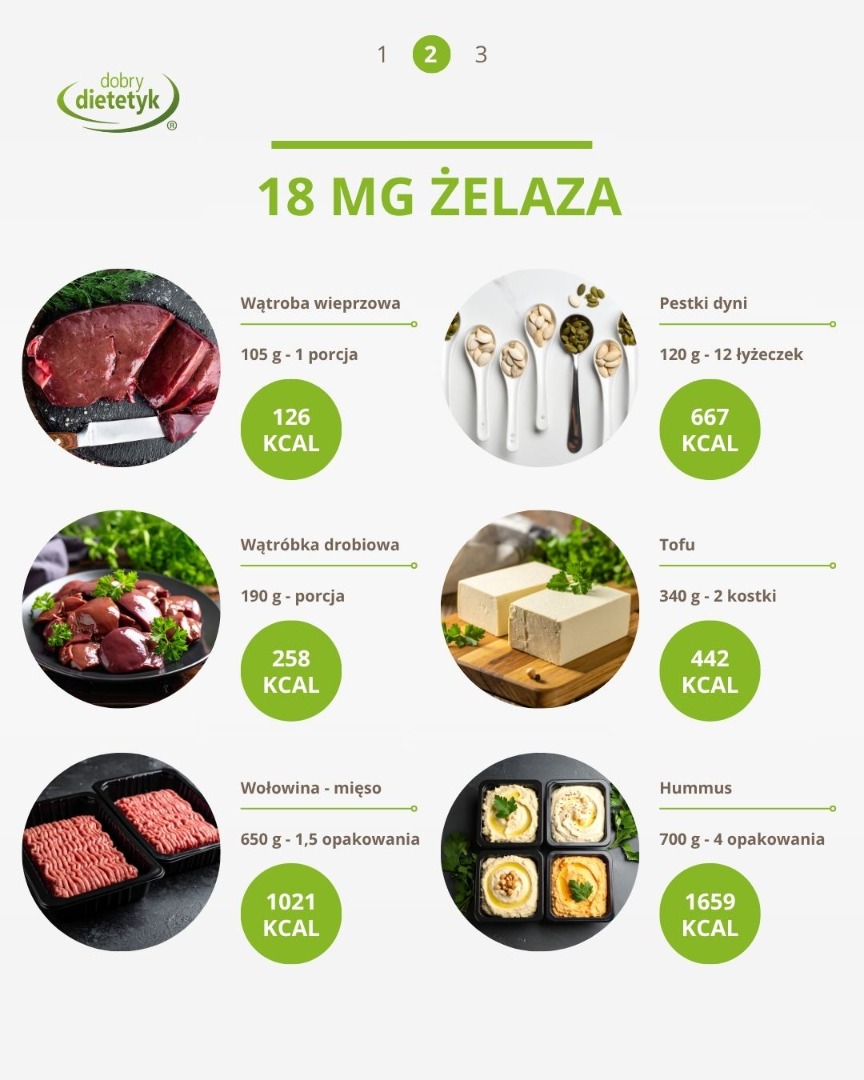 👉Zobacz karuzelę i poznaj produkty bogate w żelazo (zarówno hemowe, jak i niehemowe)